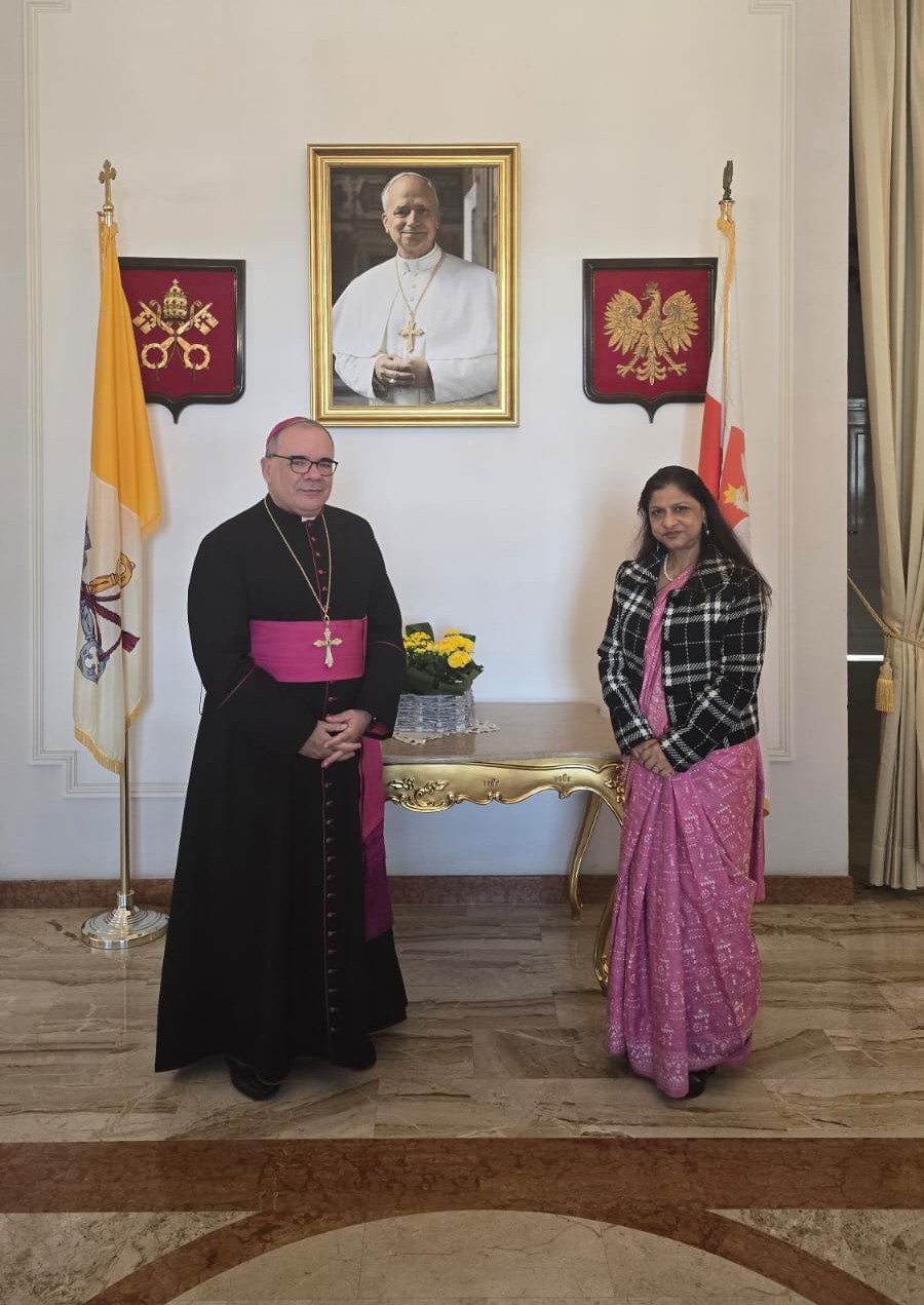 W siedzibie Nuncjatury Apostolskiej w Warszawie, w dniu 16 kwietnia br., Dziekan Korpusu Dyplomatycznego Jego Ekscelencja abp Antonio Guido Filipazzi, Nuncjusz Apostolski w Polsce, w imieniu Korpusu Dyplomatycznego, powitał nowego Ambasadora Desygnowanego Indii w Polsce Jej Ekscelencję Panią Neeta Bhushan.